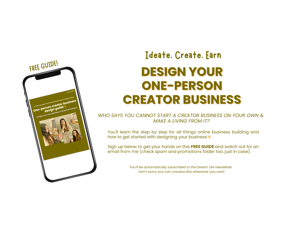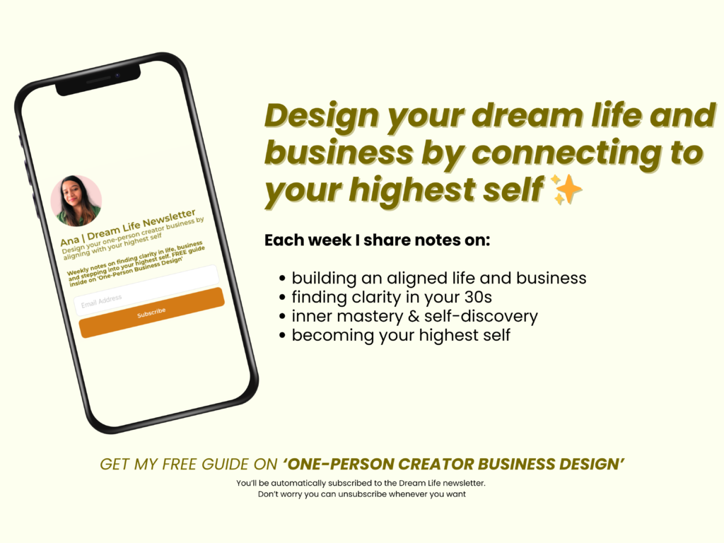 I started building a one-person creator business in my 30s. My love for writing and personal growth led me to find my calling in life. Now I help people connect with their highest self and build their dream life